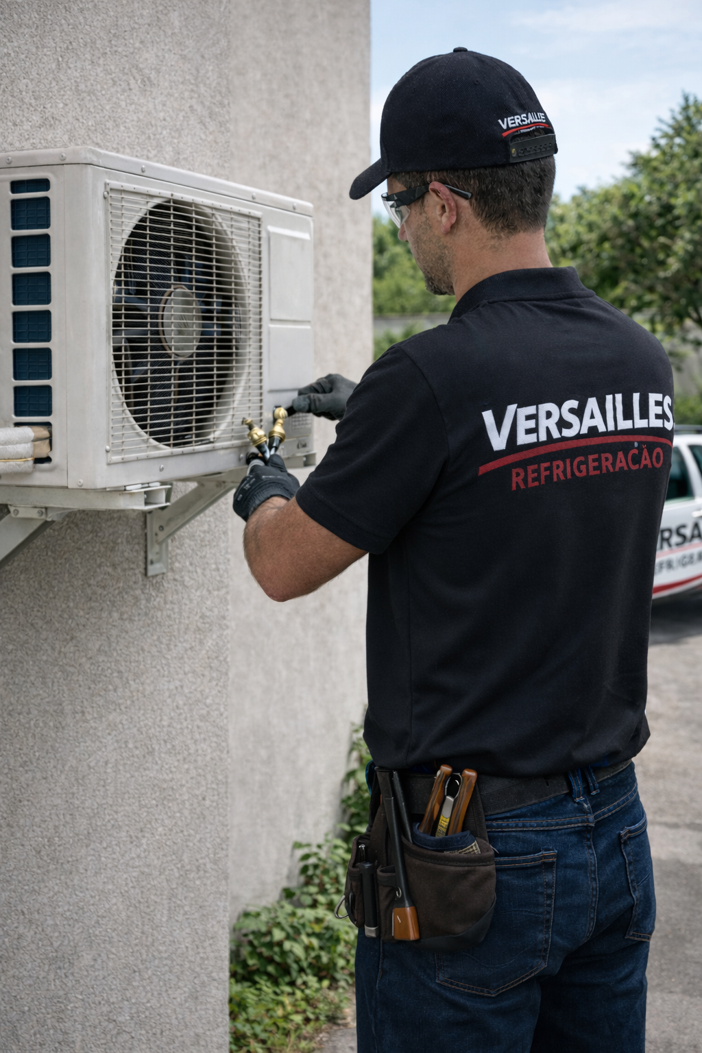 Já a assistência técnica especializada, como a Versailles Refrigeração, realiza manutenção seguindo padrões de fábrica, com peças originais, mais flexibilidade no atendimento e custos mais acessíveis ao cliente.